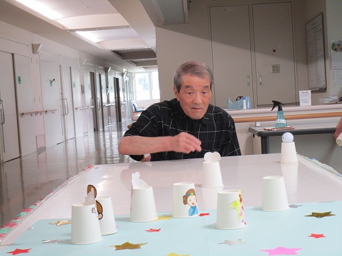 初めに織姫と彦星を模した紙コップを天の川に見立てた場所へスライドさせ、何組出会わせることができるかというゲームを行いました☆彡